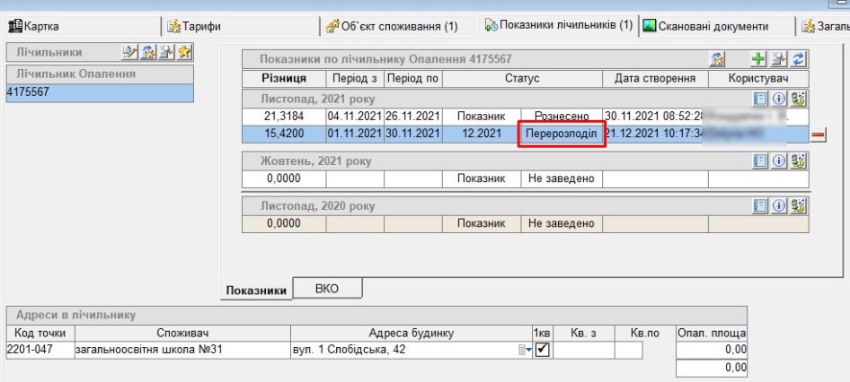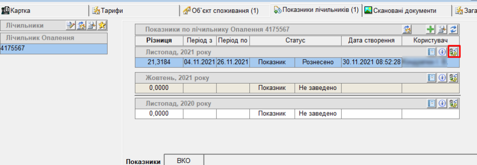 - перейти у роботу з будинками, вибрати потрібний будинок, і перейти на вкладку “Показники лічильників”: