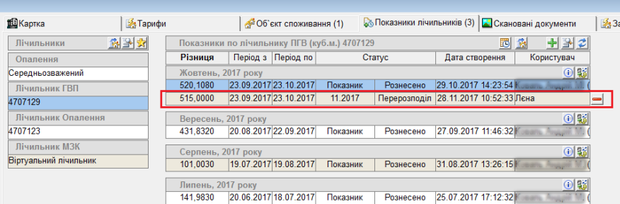 Документ "Перерозподіл показань будинкового лічильника" можна завести тільки з будинкового лічильника, для цього: