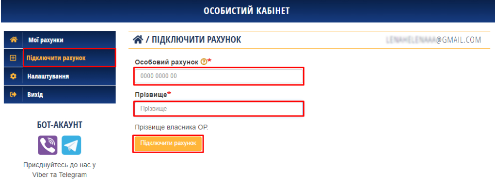 - Вказати номер особового рахунку;