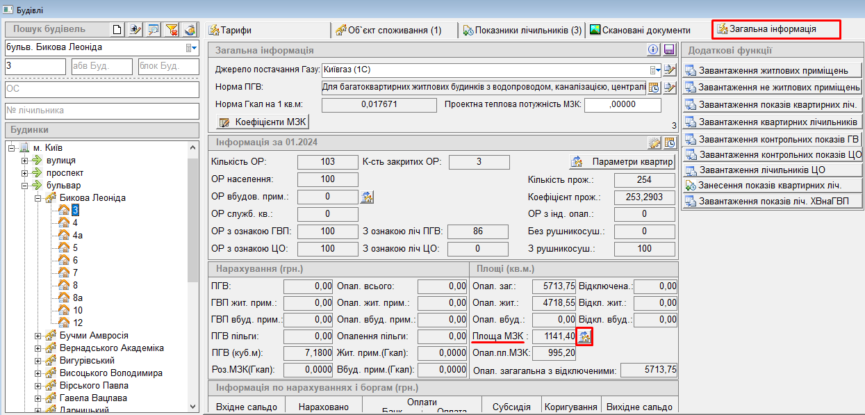 - "Абонентський відділ" — "Будівлі" - Знайти необхідний будинок;