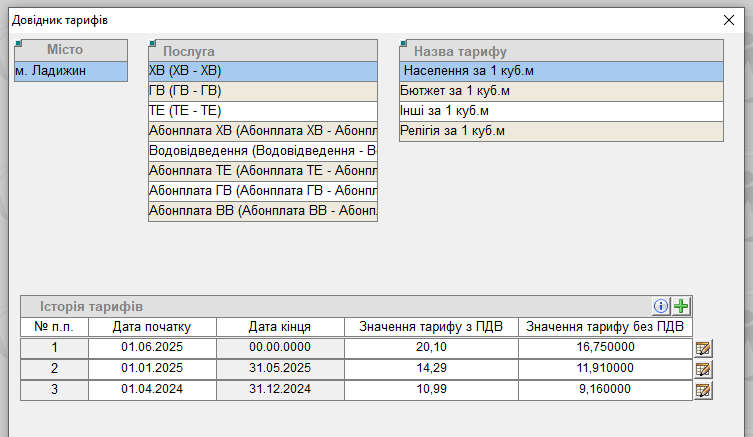 6. Потім, якщо змінились тарифи, потрібно внести актуальні тарифи у довідник тарифів.