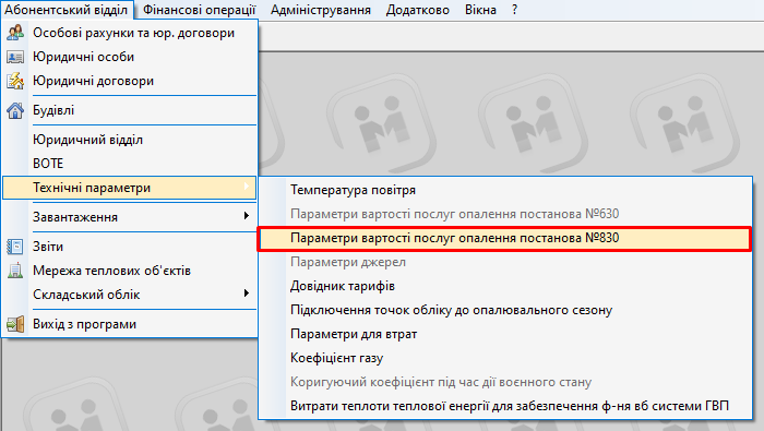 Абонентський відділ - Технічні параметри - Параметри вартості послуг опалення: