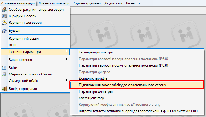 Абонентський відділ - Технічні параметри - Підключення точок обліку до опалювального сезону: