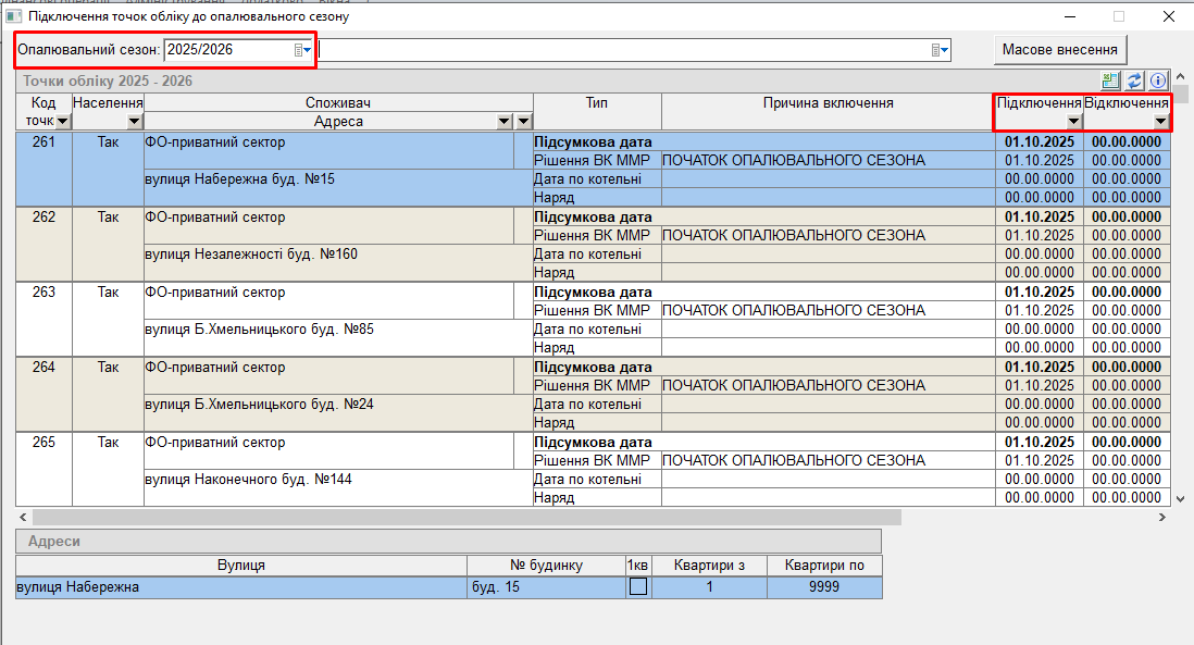1. Спочатку в системі треба перевірити чи відображено потрібний опалювальний сезон.