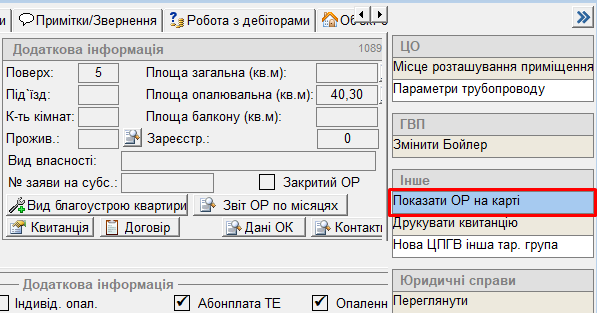 Внесення інформації по ОР згідно укладеного договогу на опалення та гарячу воду