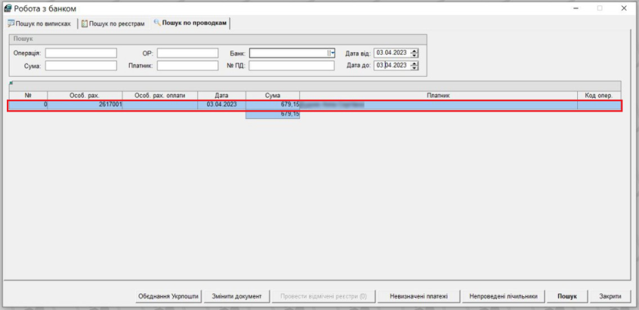 1. Якщо при завантаженні виписки помилково ввели не вірний ор, наприклад ввели "2617001", а треба було "2617002", і платіж потрапив у "Невизначені платежі".
