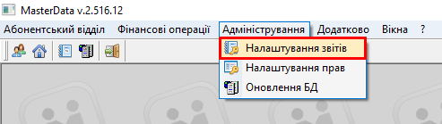 Заходимо в меню: "Адміністрування" → "Налаштування звітів":