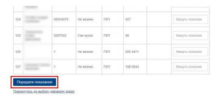 3. Коли вказали потрібну інформацію, внизу таблиці нажати на кнопку "Передати показники".