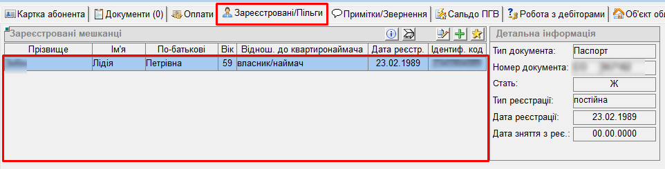 - у картці ОР перейти на вкладку "Зареєстровані/пільги";