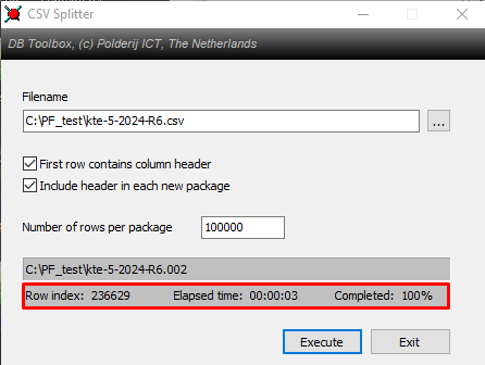 Отже, в результаті, - 1 файл на 236 тис. записів розділено на 3 файли (2 файли по 100 тис. і третій з залишком 36 тис.)