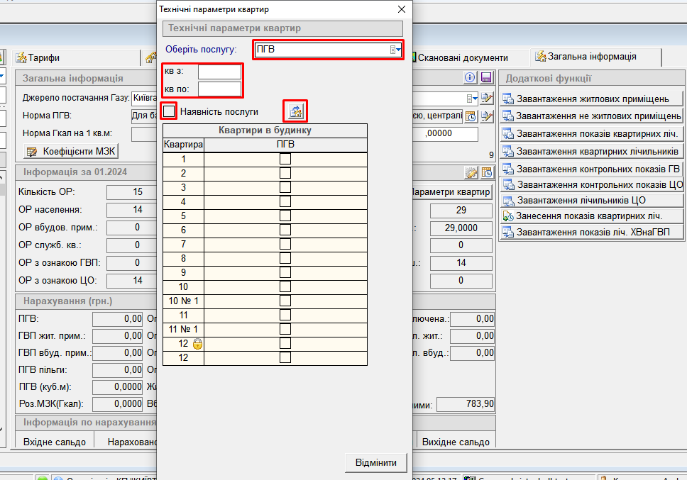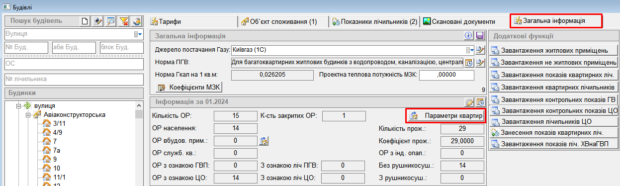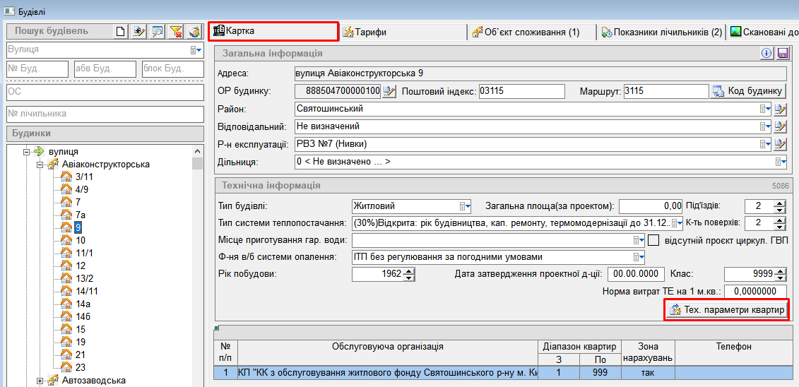 - у картці будинку натиснути “Тех.параметри квартир”:
