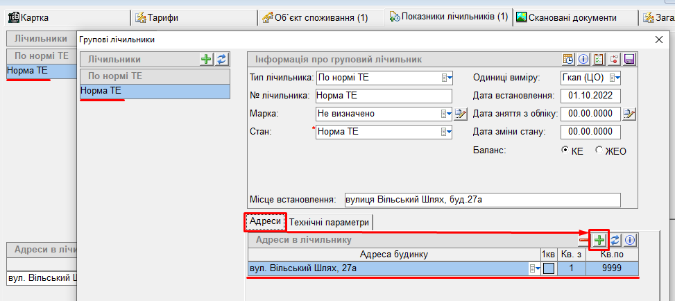 3. Далі потрібно прив'язати адресу до лічильника "Норма ТЕ".