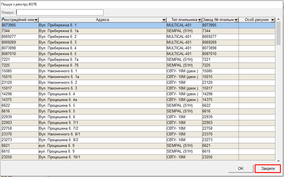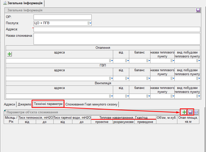 - після заповнення інформації про лічильник натиснути кнопку "дискета" для збереження: