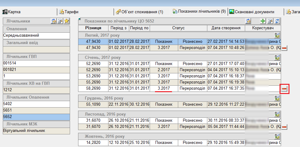1. Є можливість видалити тільки тей перерозподіл, який був створений у поточному місяці. Тобто, якщо перерозподіл створено у поточному місяці за минулий місяць, його можна видалити (на прикладі, що на скріншоті вище, можна видалити тільки ті перерозподіли, де дата стоїть 3.2017)