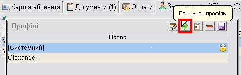- Якщо створено декілька профілів, з різними налаштуваннями вигляду колонок у вкладці, і потрібно примінити налаштування одного з них, вибираєте потрібний профіль з списку (виділивши синім фоном) і нажимаємо кнопку - зелена стрілка "Примінити профіль", а якщо цей профіль ще потрібно встановити за замовчуванням, то далі на кнопку - "Встановити за замовчуванням".