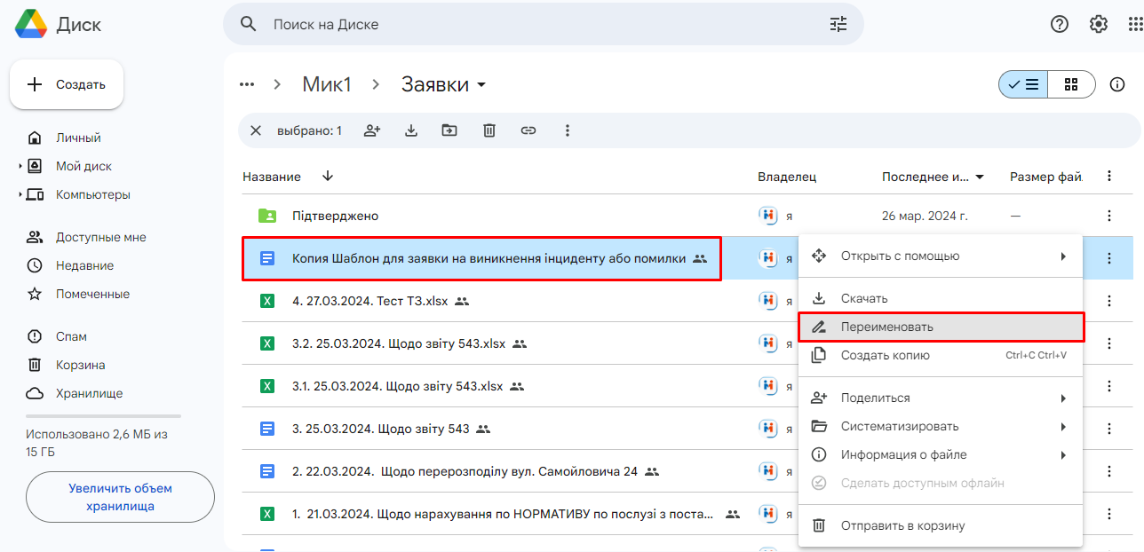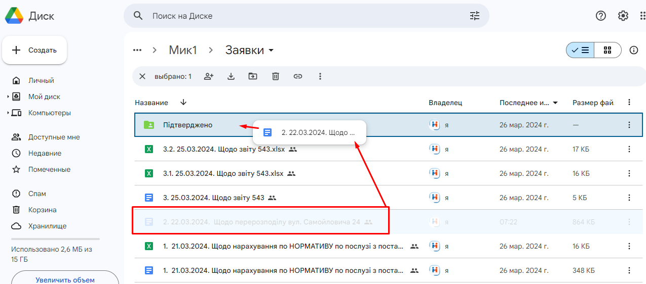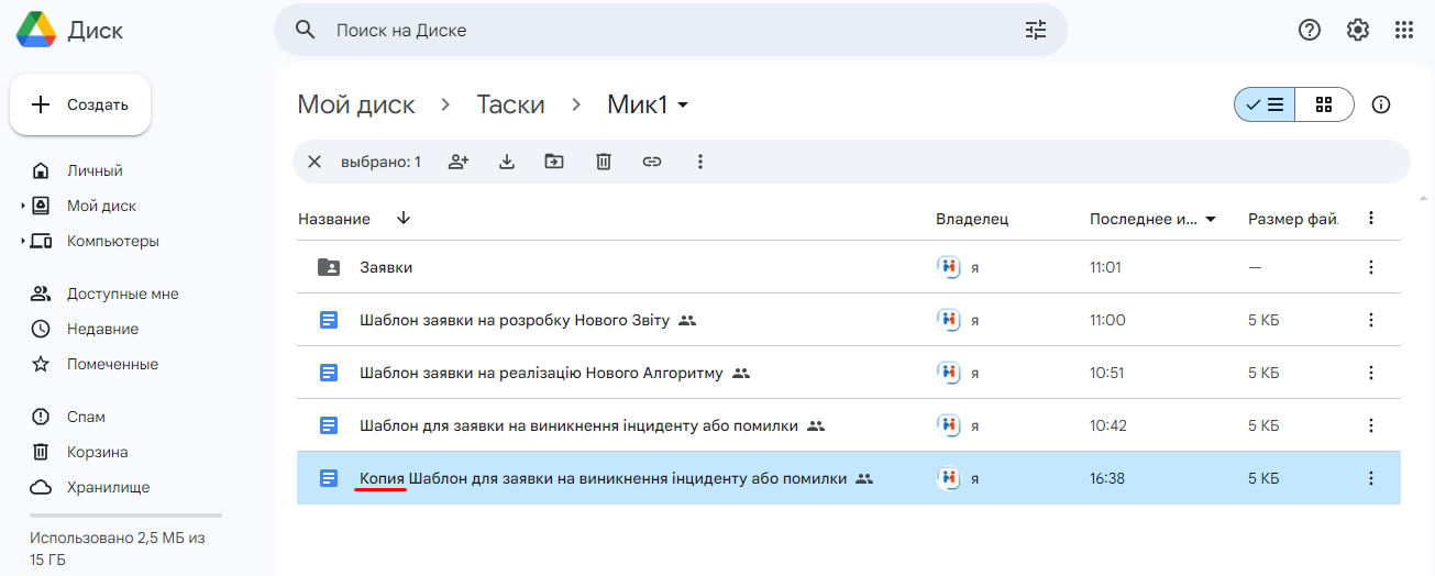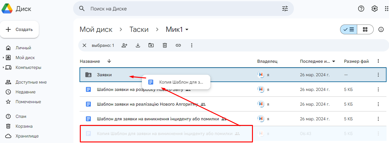 4. Далі, копію шаблону потрібно перемістити у папку "Заявки":