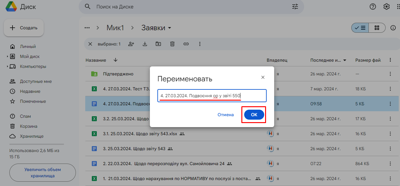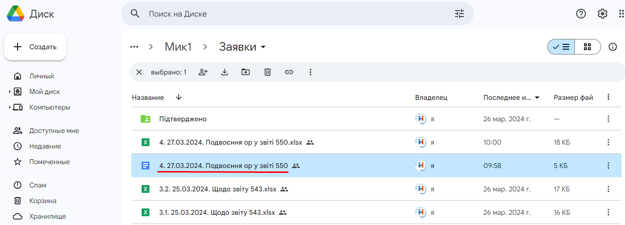 для прикладу - назва заявки була така: "4. 25.03.2024. Подвоєння ОР у звіті 550"