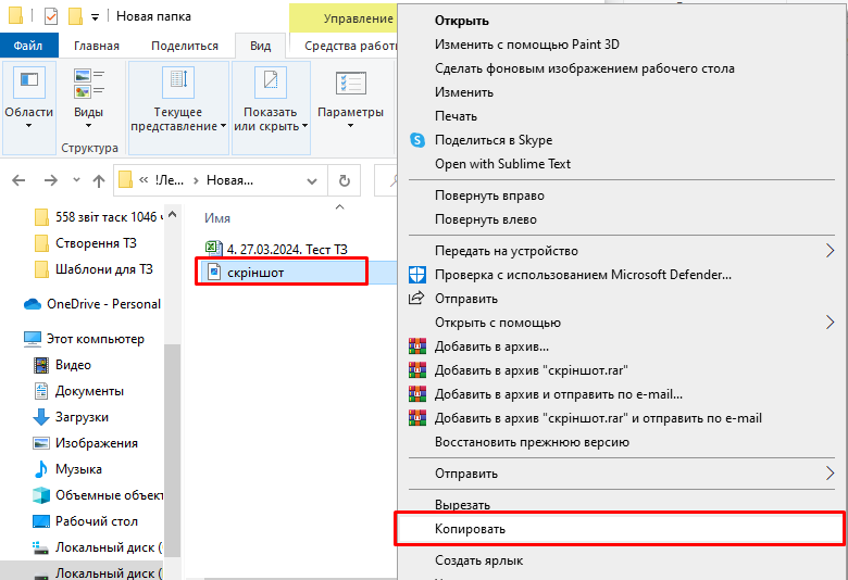 - скопіювати скріншот: