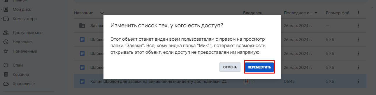 5. Відкриється таке повідомлення, тут натиснути "Переместить":