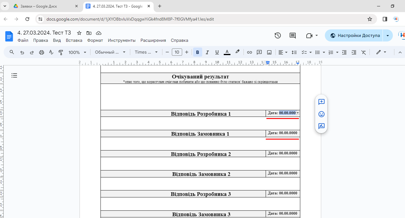 7. У папці "Заявки" бачимо копію шаблону, - відкриваємо шаблон (двічі по ньому клацнувши), - він відкриється у новій вкладці: