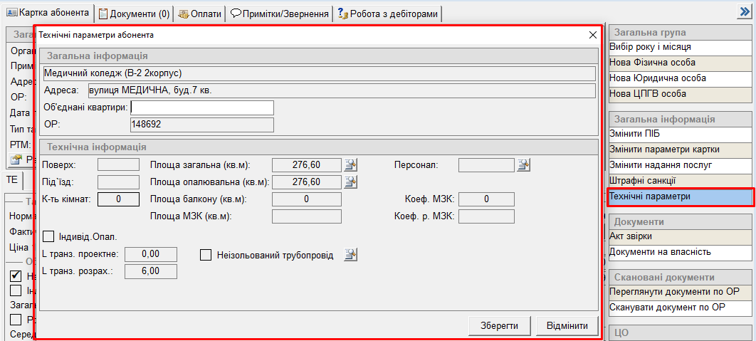 Технічні параметри - перегляд технічних параметрів по ОР; та можливість деякі тех.параметри редагувати: