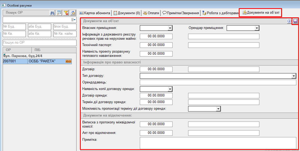 Для роботи з Юридичними особами додана вкладка "Документи на об'єкт":