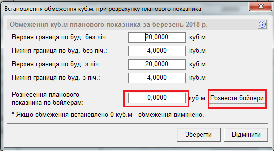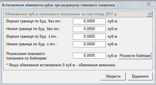 відкриється вікно "Встановлення обмеження куб.м при розрахунку планового показника":