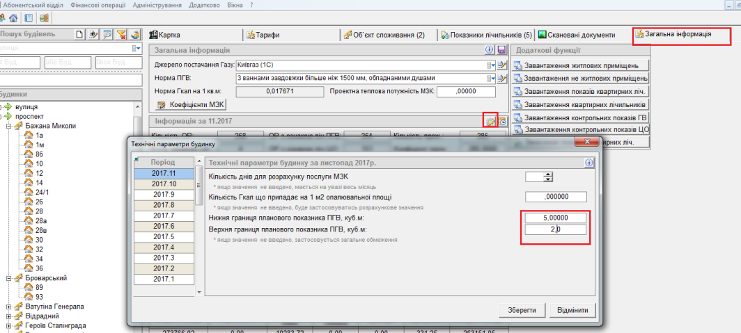 Далі - вказати верхні та нижні границі по будинкам з буд. лічильником та по будинкам без буд. лічильників та натиснути кнопку “Зберегти”.
