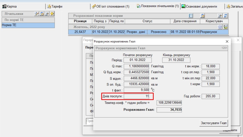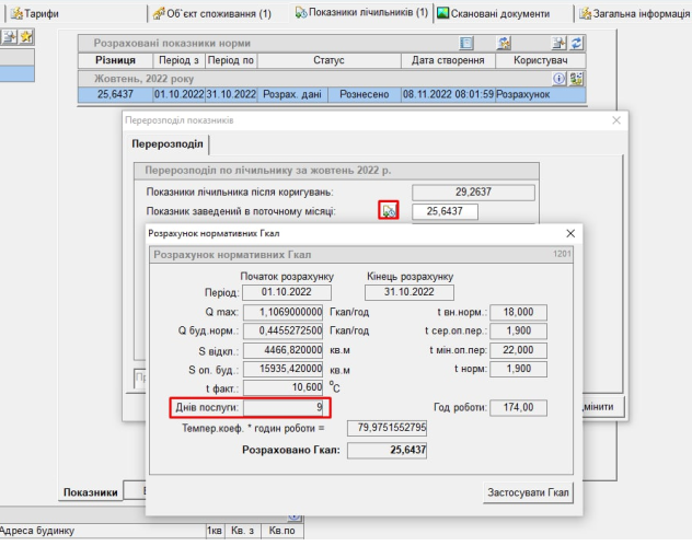 Наприклад, по будинку було “Днів послуги” — 9 :