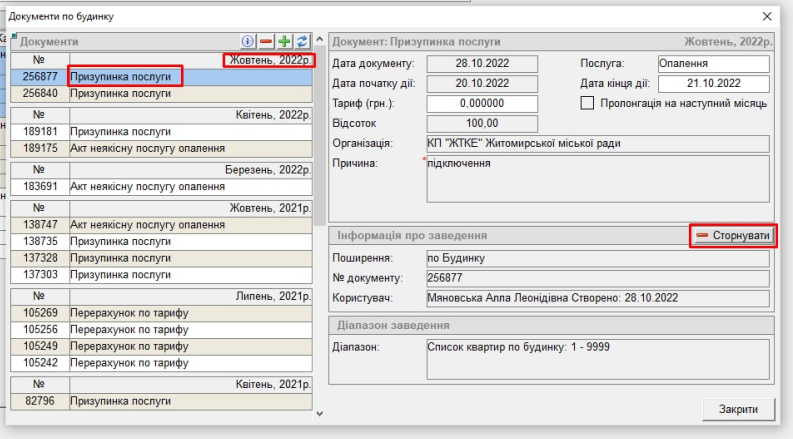 - Сторнуємо документ призупинки послуги