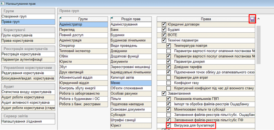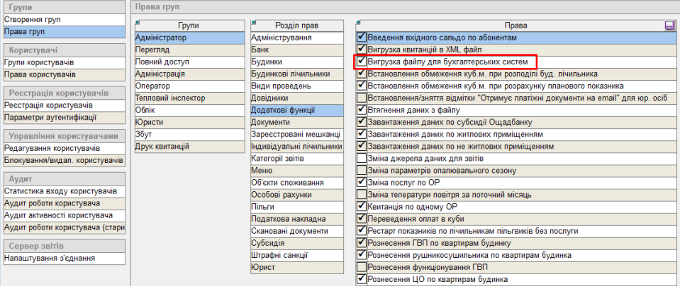 Абонентський відділ – Завантаження – Вигрузка для бухгалтерії: