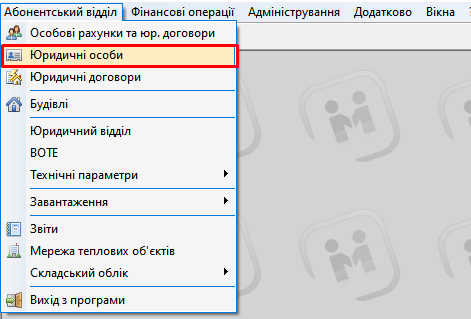 - у "Роботі з особовими рахунками" знайти потрібний ОР, натиснути кнопку "лупа", і відкриється вікно юридичної особи;