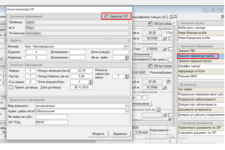 Раніше особові рахунки закривались таким способом: через “Змінити параметри картки” - галочка “Закритий ОР”:
