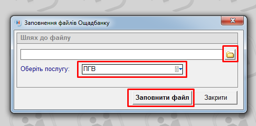 відкриється вікно “Заповнення файлів ощадбанку”: