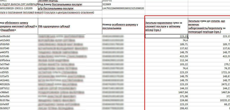 Заповнення файлів Ощадбанку по пільгам та субсидіям