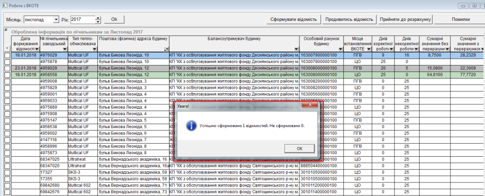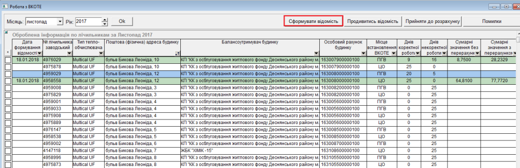 - вибрати потрібний лічильник (або декілька помітити галочками зліва) і нажати на кнопку "Сформувати відомість":