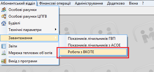 Перейти в "Абонентський відділ" - "Завантаження" - "Робота з ВКОТЕ":
