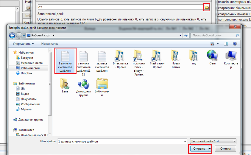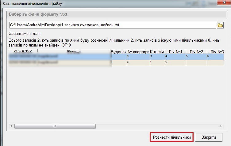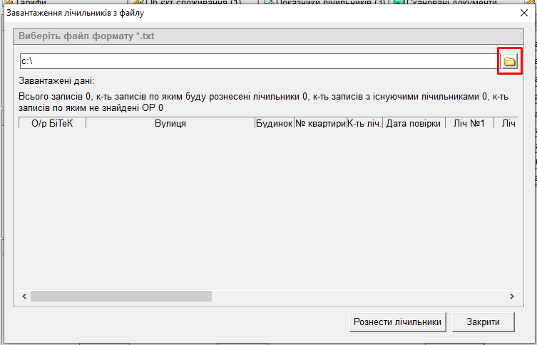 4. Відкриється вікно "Завантаження лічильників з файлу":