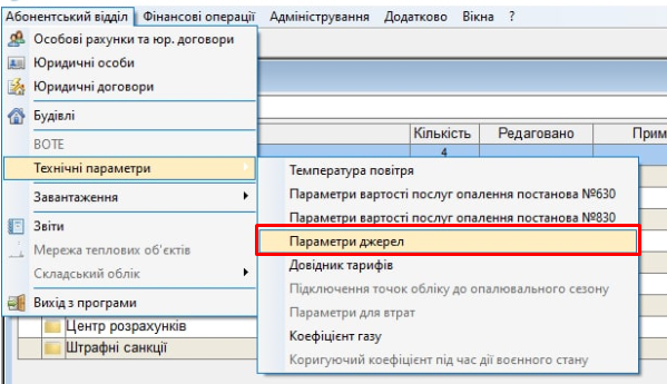 2. Відкриється вікно “Технічні параметри теплових джерел”: