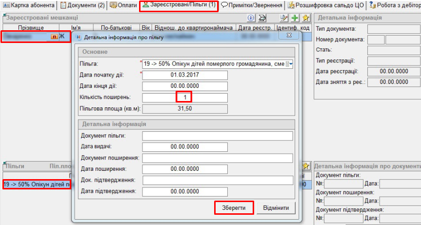 - перейти на вкладку "Зареєстровані/пільги";