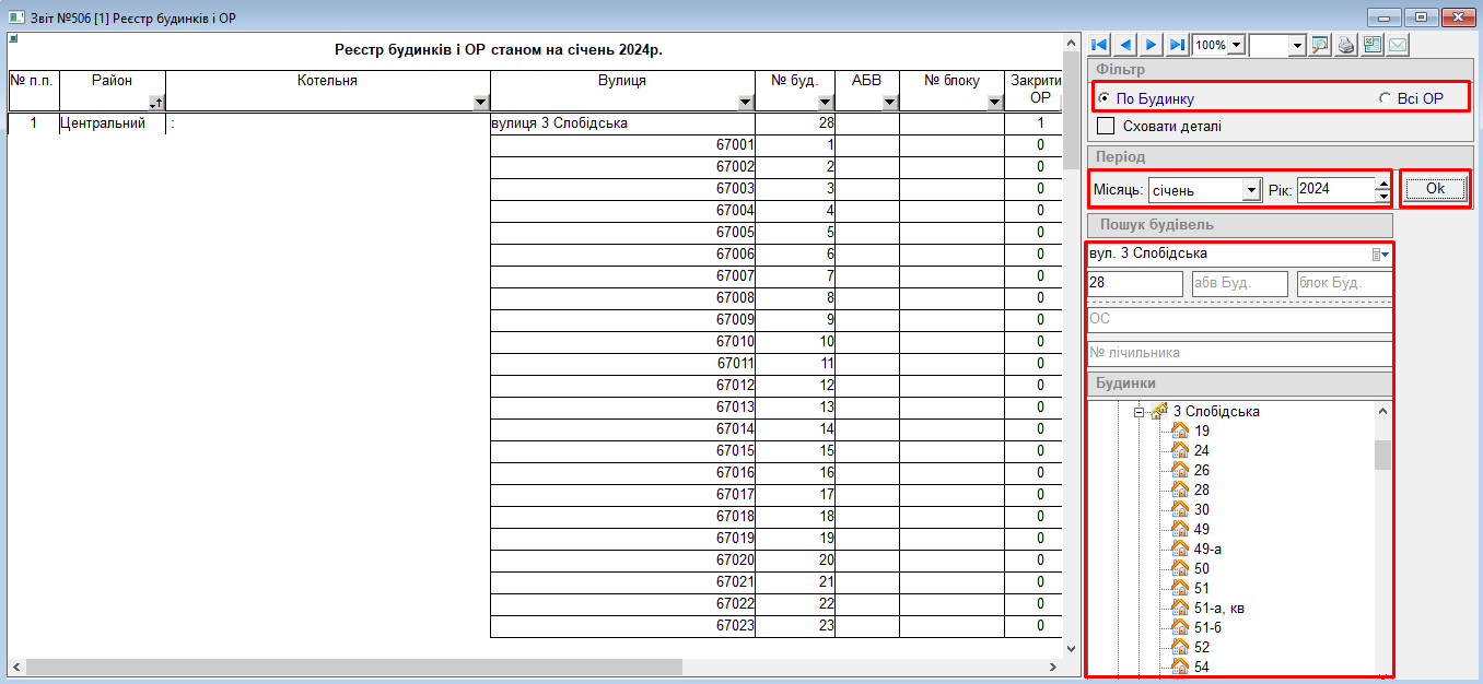 щоб побудувати звіт - вибрати необхідні параметри для формування звіту, та натиснути "ОК".