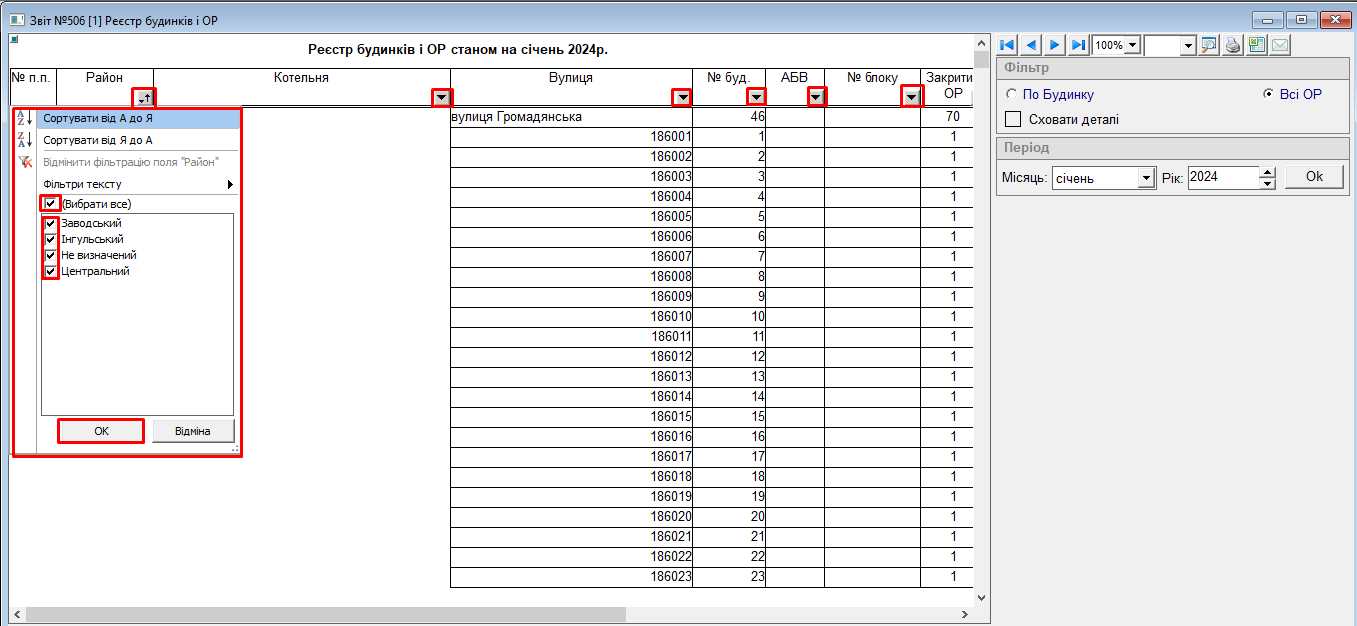 Дані у побудованому звіті можливо фільтрувати по потрібним колонкам, для цього: